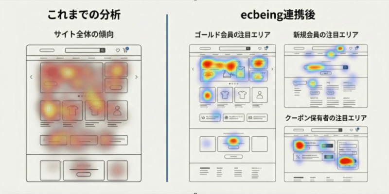 この課題を解消するために活用できるのが、Ptengine × ecbeing の連携による「属性 × 行動分析」 です。