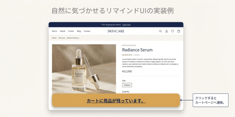 今回は、そんなユーザーに対し、サイト離脱前(回遊中)にさりげなくカートの存在を思い出させる「リマインド表示施策」をご紹介します。