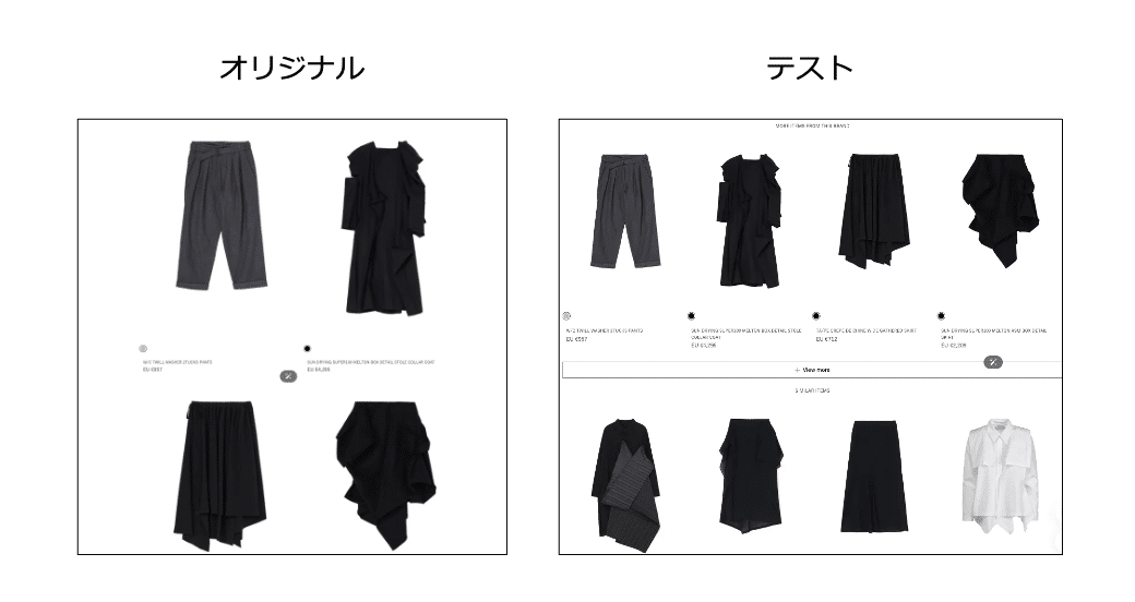 サムネイルを拡大し、色展開を並べて表示することでラインナップの比較がスムーズにします。ユーザー体験を向上しつつ、購買行動も後押しされました。