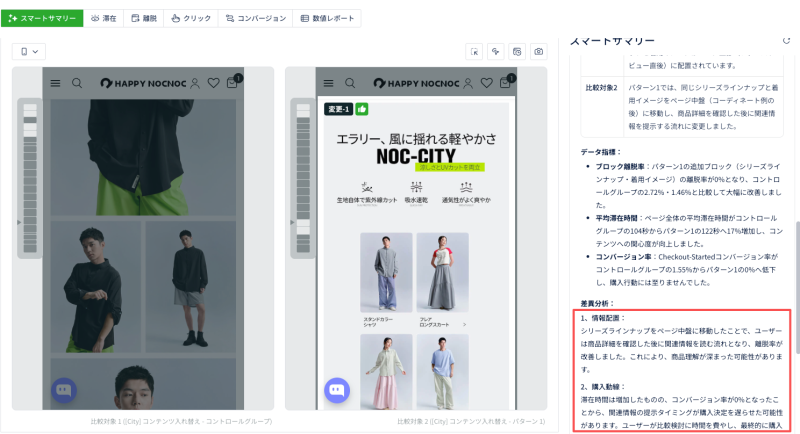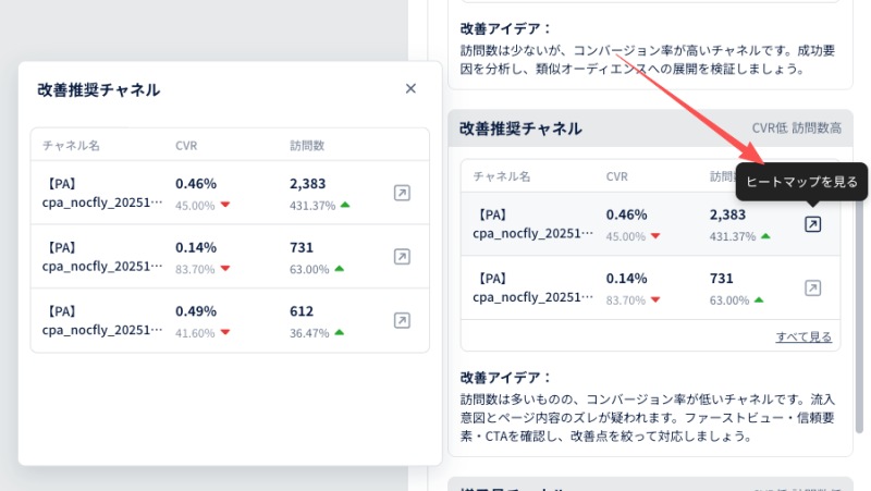 Ptengine スマートヒートマップは、広告・LP行動・A/Bテスト結果を横断分析し、 「誰を優先すべきか / どこで詰まっているか / 次に何を検証すべきか」を一画面で提示します。 分析経験がなくても、5〜10分でページの課題と打ち手を発見できます。